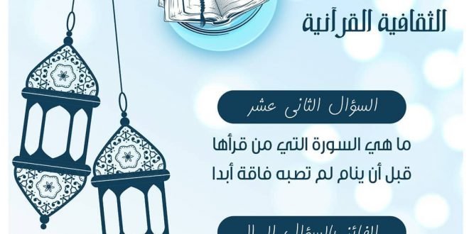 سؤال اليوم الثاني عشر من المسابقة الثقافية اليومية القرآنية “نون”… القسم الثاني… والتي تقدمها لجنة تعليم القرآن الكريم ضمن برنامجها الرمضاني السنوي للشهر الفضيل والذي يعرض ضمن باقة البرنامج الرمضاني الكرزكاني . . الإجابة فقط تكون من خلال ستوري انستغرام لجنة تعليم القرآن الكريم . . @tquran @tquran #البرنامج_الرمضاني_الكرزكاني #تعليم_القران …