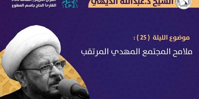 . ‘ ۩ ﻣأﭠم ﻛرزﻛٱن .. . . البرنامج الرمضاني الكرزكاني . 🌙 برنامج مأتم كرزكان للرجال للشهر الفضيل عبر البث المباشر . الليلة الخامسة والعشرين : ليلة الثلاثاء 18/05/2020 . الشيخ د. عبدالله الديهي . عنوان المحاضرة : ملامح المجتمع المهدي المرتقب . . دعاء الإفتتاح | الساعة 8:30 …
