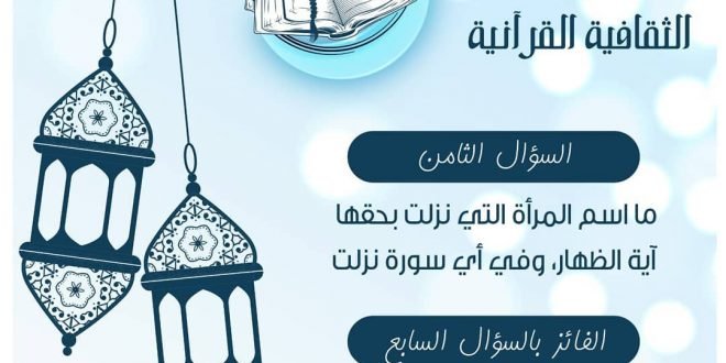 سؤال اليوم الثامن من المسابقة الثقافية اليومية القرآنية “نون”… القسم الثاني… والتي تقدمها لجنة تعليم القرآن الكريم ضمن برنامجها الرمضاني السنوي للشهر الفضيل والذي يعرض ضمن باقة البرنامج الرمضاني الكرزكاني . . الإجابة فقط تكون من خلال ستوري انستغرام لجنة تعليم القرآن الكريم . . @tquran @tquran #البرنامج_الرمضاني_الكرزكاني #تعليم_القران #كرزكان …