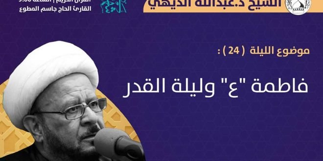 . ‘ ۩ ﻣأﭠم ﻛرزﻛٱن .. . . البرنامج الرمضاني الكرزكاني . 🌙 برنامج مأتم كرزكان للرجال للشهر الفضيل عبر البث المباشر . الليلة الرابعة والعشرين : ليلة الإثنين 17/05/2020 . الشيخ د. عبدالله الديهي . عنوان المحاضرة : فاطمة عليها السلام وليلة القدر. . . دعاء الإفتتاح | الساعة …