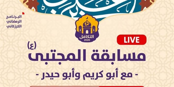 البرنامج الرمضاني الكرزكاني برنامج التكافل الاجتماعي 2020 ليلة الخميس 6/5/2020 مسابقة: المجتبى (مباشر) بمشاركة أبو كريم وأبو حيدر أسئلة متنوعة واجابات مباشرة تقدر تطلع لايف وتتحدى عندك أبيات شعرية وتبي تلقيها لايف موعدنا معاكم الليلة الوقت:🕚11:00 البث المباشر على حساب @karzakancom المصدر