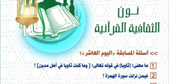 أسئلة اليوم العاشر من المسابقة الثقافية اليومية القرآنية “نون” والتي تقدمها لجنة تعليم القرآن الكريم ضمن برنامجها الرمضاني السنوي للشهر الفضيل والذي يعرض ضمن باقة البرنامج الرمضاني الكرزكاني . . الإجابة تكون عبر رابط المسابقة في بايو انستغرام لجنة تعليم القرآن الكريم . . @tquran @tquran #البرنامج_الرمضاني_الكرزكاني #تعليم_القران #كرزكان #كرزكانكم …