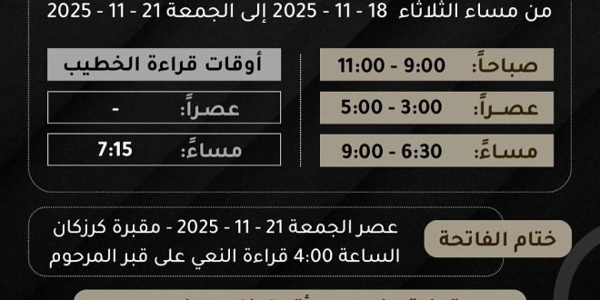 …•|【 دعاء كميل&دعاء الندبة 】|•… 📖 *دعاء كميل* 🗓 *20/11/2025* ⏱ بعد الصلاة مباشرة 🗣 القارئ حسين علي مرهون 📺 *الـبـث المباشر على قناة* *مـأتـم كـرزكـان للرجـال* http://www.youtube.com/MatamKarzakan/live 📖 *دعاء الندبة* 🗓 *21/11/2025* ⏱ بعد الصلاة مباشرة 🗣 القارئ ميثم علي ميثم 🧕يوجد مكان للنساء ╼ ╾╼ ╾╼ ╾╼ ╾╼ …