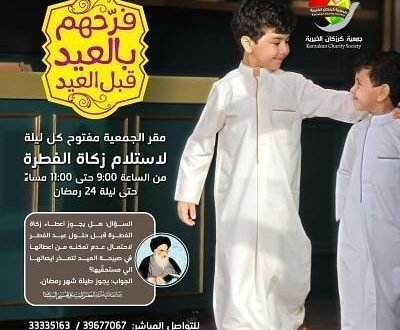 مقر الجمعية مفتوح كل ليلة لاستلام زكاة الفطرة من الساعة 9 – 11 مساء، حتى ليلة 24 رمضان فرحهم بالعيد.. قبل العيد @karzakancharity #رمضان #شهر_رمضان #شهر_الخير #شهر_الخيرات #ربيع_القلوب #شهر_القرآن #كرزكان #كرزكانكم #أخبار_كرزكانكم #منوعات_كرزكانكم #قريتنا #أخبار_القرية #قريتنا_الحبيبة #قرية_كرزكان #أخبار_قرية_كرزكان #قرى_البحرين #مملكة_البحرين #البحرين #بحريننا #bahrain #karzakan #karzakancom #karzakancom_news المصدر