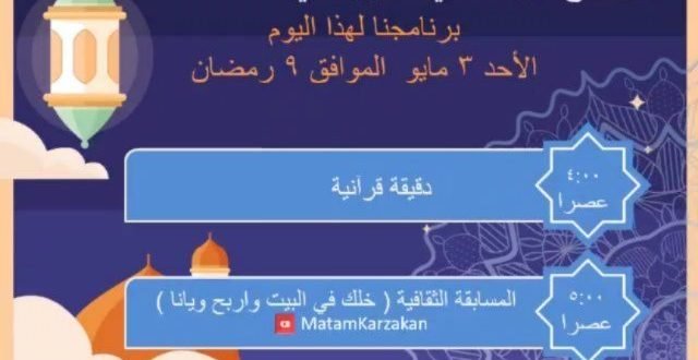 ‘ ۩ ﻣأﭠم ﻛرزﻛٱن .. . 🔴 ضمن باقة البرنامج الرمضاني الكرزكاني . ⭐*اللجنة الثقافية بالتعاون مع إعلامية مأتم . كرزكان للرجال* ⭐ . ◀️ تقدم ▶️ . 📱المسابقة اليومية الثقافية الإلكترونية الأولى . *خلك في البيت واربح ويانا* . 🌀نظام المسابقة🌀 . 1- تقام المسابقة يومي الأحد والثلاثاء طوال …