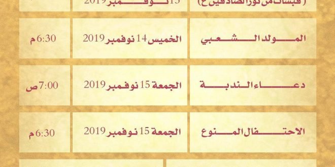 جدول فعاليات موسم الصادقين عليهما السلام بمأتم كرزكان للنساء #مأتم_كرزكان_للنساء #كرزكان #كرزكانكم #أخبار_كرزكانكم #منوعات_كرزكانكم #قريتنا #أخبار_القرية #قريتنا_الحبيبة #قرية_كرزكان #أخبار_قرية_كرزكان #قرى_البحرين #مملكة_البحرين #البحرين #بحريننا #bahrain #karzakan #karzakancom #karzakancom_news المصدر