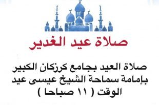 غدا ستقام صلاة عيد الغدير الساعة 11:00 صباحا بإمامة سماحة الشيخ عيسى عيد في جامع …