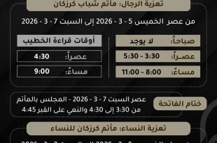 أكمل القراءة »*تفاصيل مجالس التعزية لفاتحة المرحوم الحاج