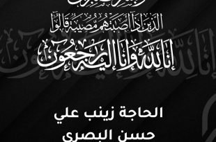 أكمل القراءة » *تفاصيل مجالس التعزية لفاتحة المرحومة الحاجة زينب البصري*
