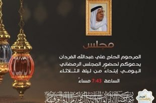 أكمل القراءة »المجالس القرآنية في شهر رمضان مجلس المرحوم الحاج علي عبدالله الفردان لنشر إعل…