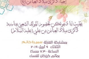 أكمل القراءة ». . تذكير: يحيي مأتم كرزكان للنساء هذه الليلة ذكرى ميلاد العباس بن علي عليه ا…