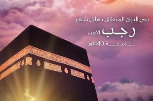 ‘ . نص البيان المتعلق بهلال شهر رجب الأصب لسنة 1440هـ: بسم الله الرحمن الرحيم …