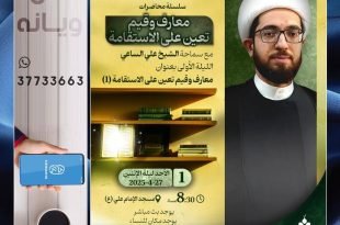 📜 *الموضوع: معارف وقيم تعين على الاستقامة* 🎙️ *المحاضر:* *سماحة الشّيخ علي السّاعي* 📆 *الليالي:* …