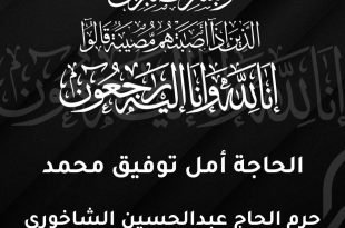 الحاجة أمل توفيق محمد، حرم الحاج عبدالحسين علي الشاخوري. اليوم الجمعة 7-3-2025 **برنامج مجالس العزاء** …