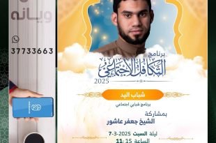 *( ليلة السبت)* *برنامج شبابي اجتماعي* *الشيخ جعفر عاشور* 📍 الساعة 11:15 ليلًا 📌 *مزرعة …