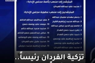 وترشح لمنصب رئيس مجلس الإدارة الرئيس الحالي محمد علي عبدالله الفردان، والذي ستتم تزكيته للرئاسة …