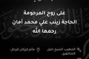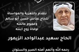 أكمل القراءة »نتقدم بأحر التعازي والمواساة للحاج عباس حسن أبو سالم وعموم عائلته بوفاة زوج ابنته