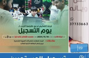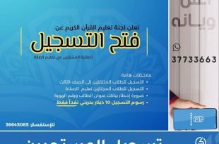 يوم التسجيل لجنة تعليم القرآن تدعو طلبتها الجدد الطلبة المتخرجين من تعليم الصلاة “المنتقلين للصف …