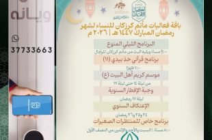 أكمل القراءة »باقة الفعاليات للشهر الكريم بمأتم كرزكان للنساء @matamkn