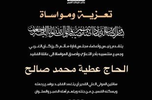 تتقدم إدارة مأتم كرزكان الغربي وجميع منتسبيه بخالص العزاء والمواساة لعائلة الفقيد المتوفى الحاج عطية …