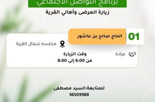 09_01_2026 1️⃣ الحاج صالح بن عاشور العنوان شمال القرية *اللهم إشف كل مريض* ♦️ *وقت …