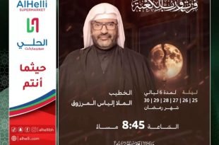 أكمل القراءة »الملا إلياس المرزوق بمجلس الحاج صالح عاشور بدءًا من ليلة 25 رمضان ولمدة 6 ليالي