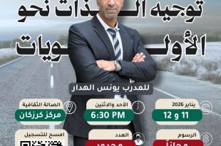 برنامج تدريبي (مجاني) بعنوان “توجيه الذات نحو الأولويات” يقدمه الأستاذ يونس الهدار على مدى ليلتين …