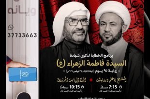 أكمل القراءة »ذكرى شهادة مولاتنا السيدة فاطمة الزهراء (ع) على الرواية الثالثة (95 يوم) بمأتم البصارى