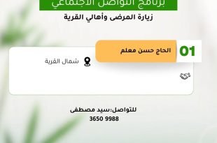 أكمل القراءة »🔶 تدعوكم اللجنة الاجتماعية بجمعية كرزكان الخيرية للمشاركة في برنامج التواصل الاجتماعي و زيارة المرضى وأهالي القرية والزيارة ليلة السبت