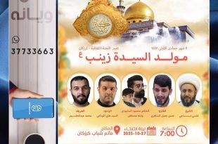 🔸 ذكرى مولد السيدةزينب عليها السلام 📅 ليلة الأربعاء 28 / 10 / 2025 ⏰ …