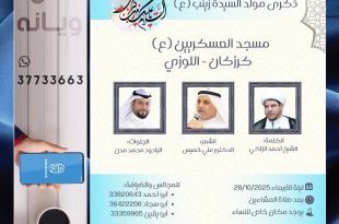 أكمل القراءة »يقيم مأتم كرزكان الغربي إحتفالاً بذكرى مولد السيدة زينب (ع) :