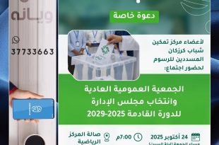 أكمل القراءة » يعلن مركز تمكين شباب كرزكان لأعضائه الكرام عن موعد انعقاد اجتماع الجمعية العمومية العادي وانتخاب مجلس إدارة جديد