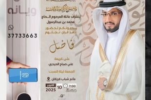 🌺تتشرف عائلة المرحوم الحاج محمد بن عبدالرسول بدعوتكم لحفل عقد قران نجلهم *«فاضل»*، بمأتم شباب كرزكان.