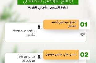 أكمل القراءة »*زيارات أهالي القرية والمرضى ضمن برنامج التواصل الاجتماعي للجنة الاجتماعية بـ جمعية كرزكان الخيرية*