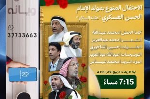 أكمل القراءة »الاحتفال بمولد الإمام الحسن العسكري بمأتم البصارى