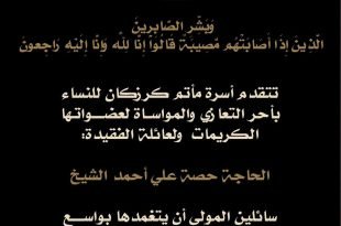 أكمل القراءة ». تقبل التعازي للنساء في مأتم كرزكان للنساء . رحم الله من قرأ سورة الفاتحة …