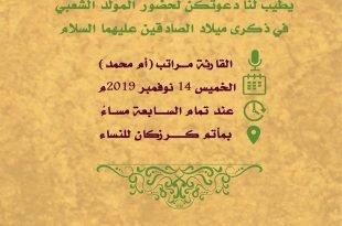 أكمل القراءة »‘ تذكير . ۩ ﻣأﭠم ﻛرزﻛٱن .. . برنامج الاحتفال بمناسبة ذكرى* مولد النبي (ص) و ح…