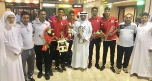 . صورة من استقبال ابطال البطولة العربية للكرة الشاطئية في مطار البحرين بحضور ممث…