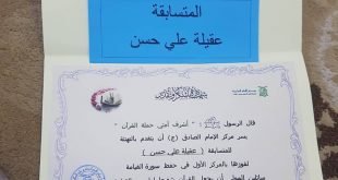ابنة القرية عقيلة علي حسن ميثم تحرز المركز الأول في مسابقة مركز الإمام الصادق (ع…