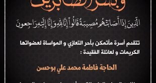 يتقدم مجلس إدارة مركز كرزكان الثقافي والرياضي بأحر التعازي والمواساة بوفاة الحاج…