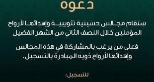 ستقام مجالس حسينية تثويبية وإهدائها لأرواح المؤمنين خلال النصف الثاني من الشهر ا…