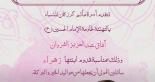 – . ۩ مأتم كرزكان.. تغطية مصورة : مولد عليه السلام – فرقة أصداء الغدير . . …