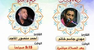 قراءة المناجاة الشعبانية بعد صلاة العشائين بمسجد الرسول (ص) بمشاركة القارئ خليل …