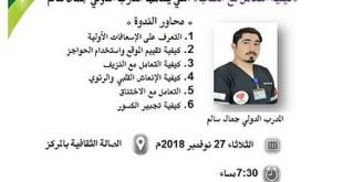 تدعوكم اللجنة الثقافية بالمركز لحضور ندوة الإسعافات الأولية تحت عنوان “كيفية الت…