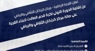 فتح باب التسجيل للدورة الأولى لكرة قدم الصالات. للشروط والتسجيل الاعلان. …