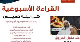 برنامج القرآءة الأسبوعية بمأتم كرزكان للرجال مساء غدا …