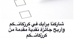 يهدف هذا الإستبيان إلى معرفة انطباع المتابعين لنا عن سير عمل كرزكانـ.ـكم حتى الآن، وسوف تعتبر النتيجة مرجعاً نستند إليه للقيام بتحسينات مستقبلية كما انها ستكون مؤشراً إلى مدى وجود الحاجة لإجراء تغييرات أكبر.اني معدودة تشاركنا فيها برأيك في سير عمل كرزكانـ.ـكممعنا صوتك فهو مهم جداً بالنسبة لنا.