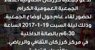 تدعو جمعية كرزكان التعاونية أعضاء الجمعية العمومية الكرام لحضور لقاء عام حول أوضاع الجمعية. وذلك ليلة السبت 19-1-2017 الساعة 6:30م بالصالة الداخلية في مركز كرزكان الثقافي والرياضي. والله وليُّ التوفيق #جمعية_كرزكان_التعاونية #كرزكان #كرزكانكم #أخبار_كرزكانكم #منوعات_كرزكانكم #قريتنا #أخبار_القرية #قريتنا_الحبيبة #قرية_كرزكان #أخبار_قرية_كرزكان #قرى_البحرين #مملكة_البحرين #البحرين #بحريننا #bahrain #karzakan #karzakancom #karzakancom_news المصدر