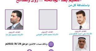تقيم اللجنة الثقافية بمركز تمكين شباب كرزكان ندوة تربوية في استقبال العام الدراسي الجديد 2022-2023 تحت عنوان: {{ التعليم بعد الجائحة •• رؤى ونصائح }} باستضافة كل من :- القائد التربوي الأستاذ علي أحمد كاظم مدن القائد التربوي الأستاذ محمد كامل العوضي القائد التربوي الأستاذ محمود طرادة وبإدارة الدكتور علي …