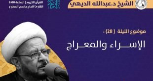 . ‘ ۩ ﻣأﭠم ﻛرزﻛٱن .. . البرنامج الرمضاني الكرزكاني . 🌙 برنامج مأتم كرزكان للرجال للشهر الفضيل عبر البث المباشر . الليلة الثامنة والعشرين : ليلة الجمعة 21/05/2020 . الشيخ د. عبدالله الديهي . عنوان المحاضرة: الإسراء والمعراج . . دعاء الإفتتاح | الساعة 8:30 مساء القرآن الكريم | …